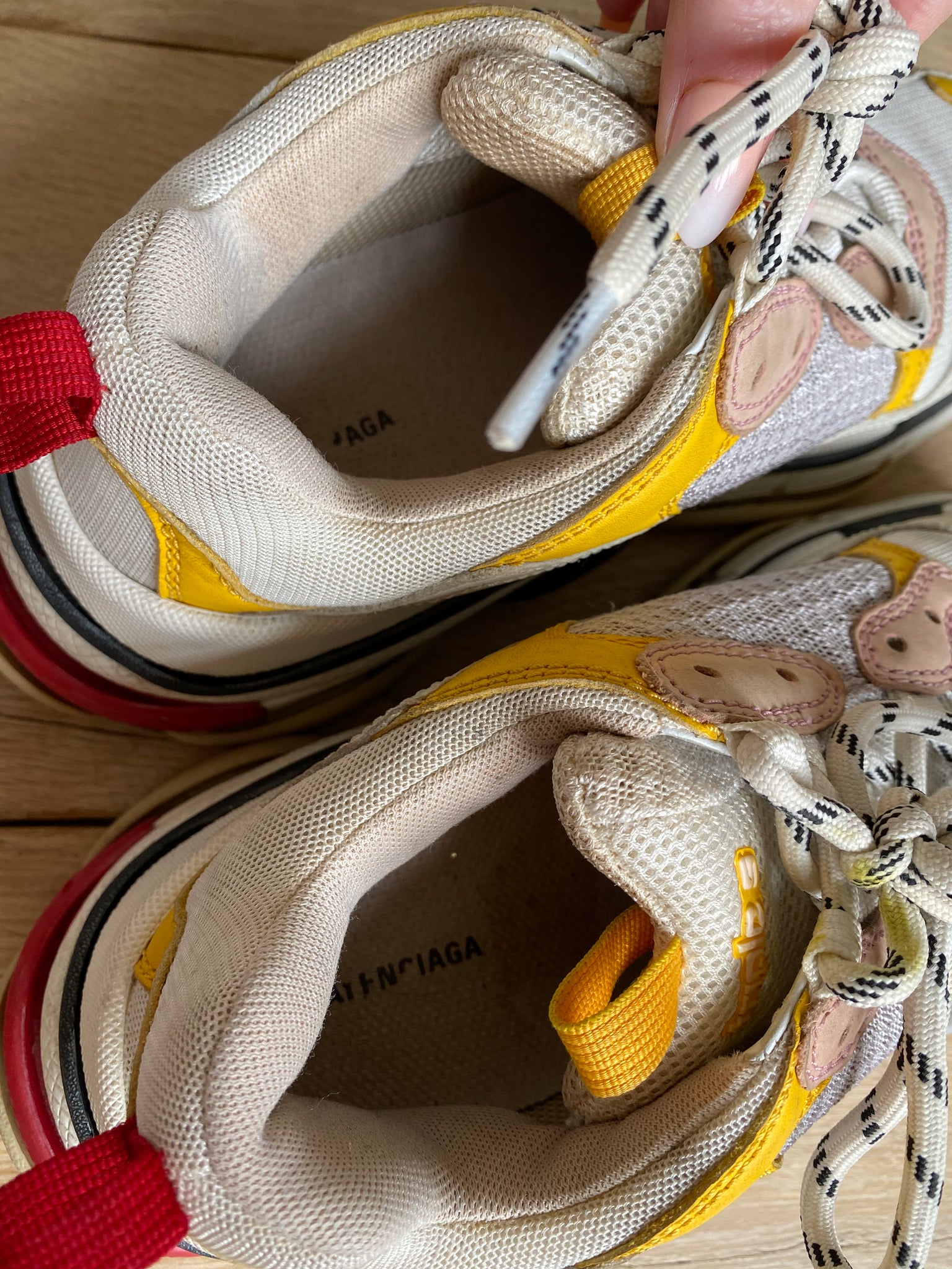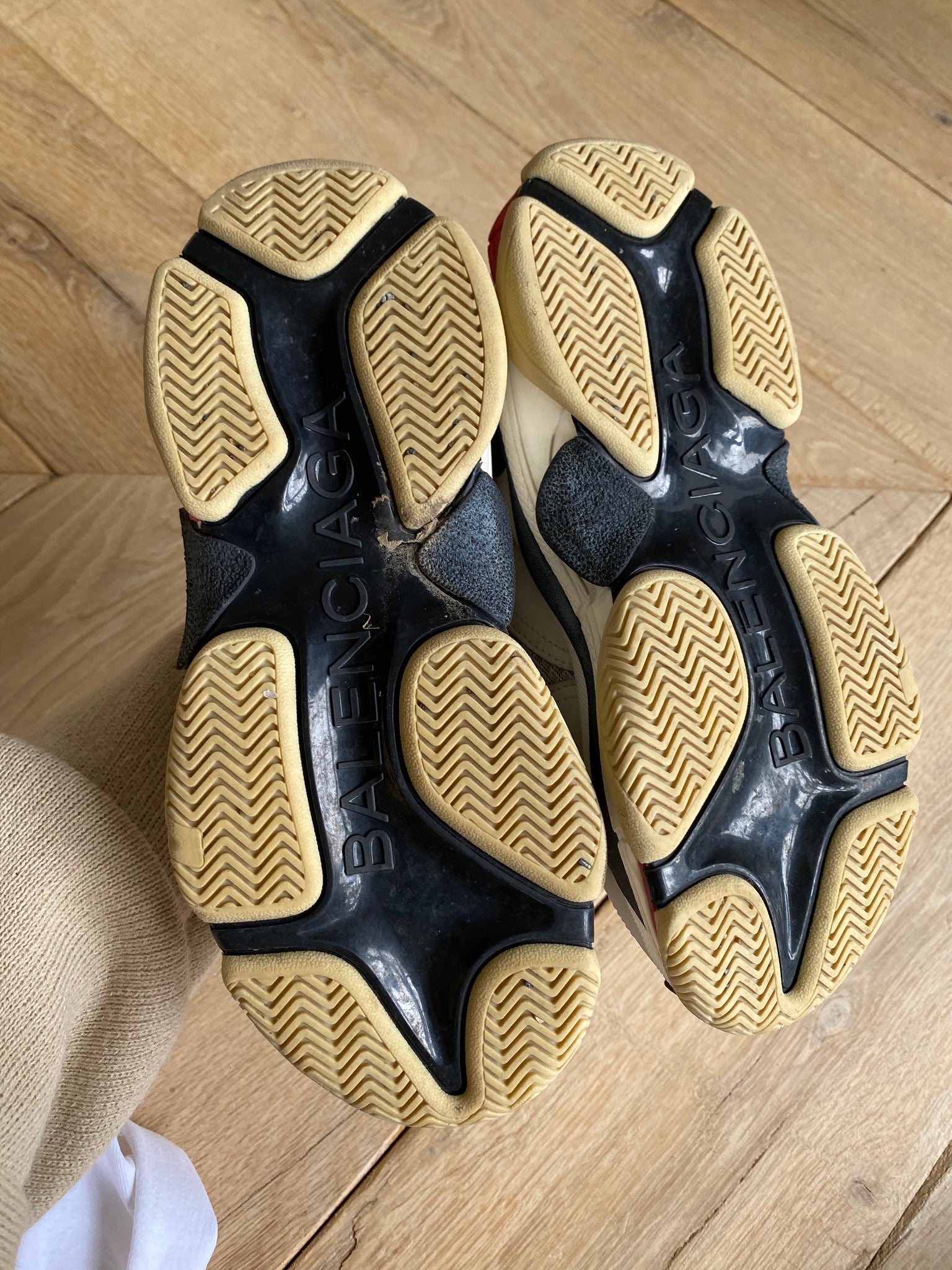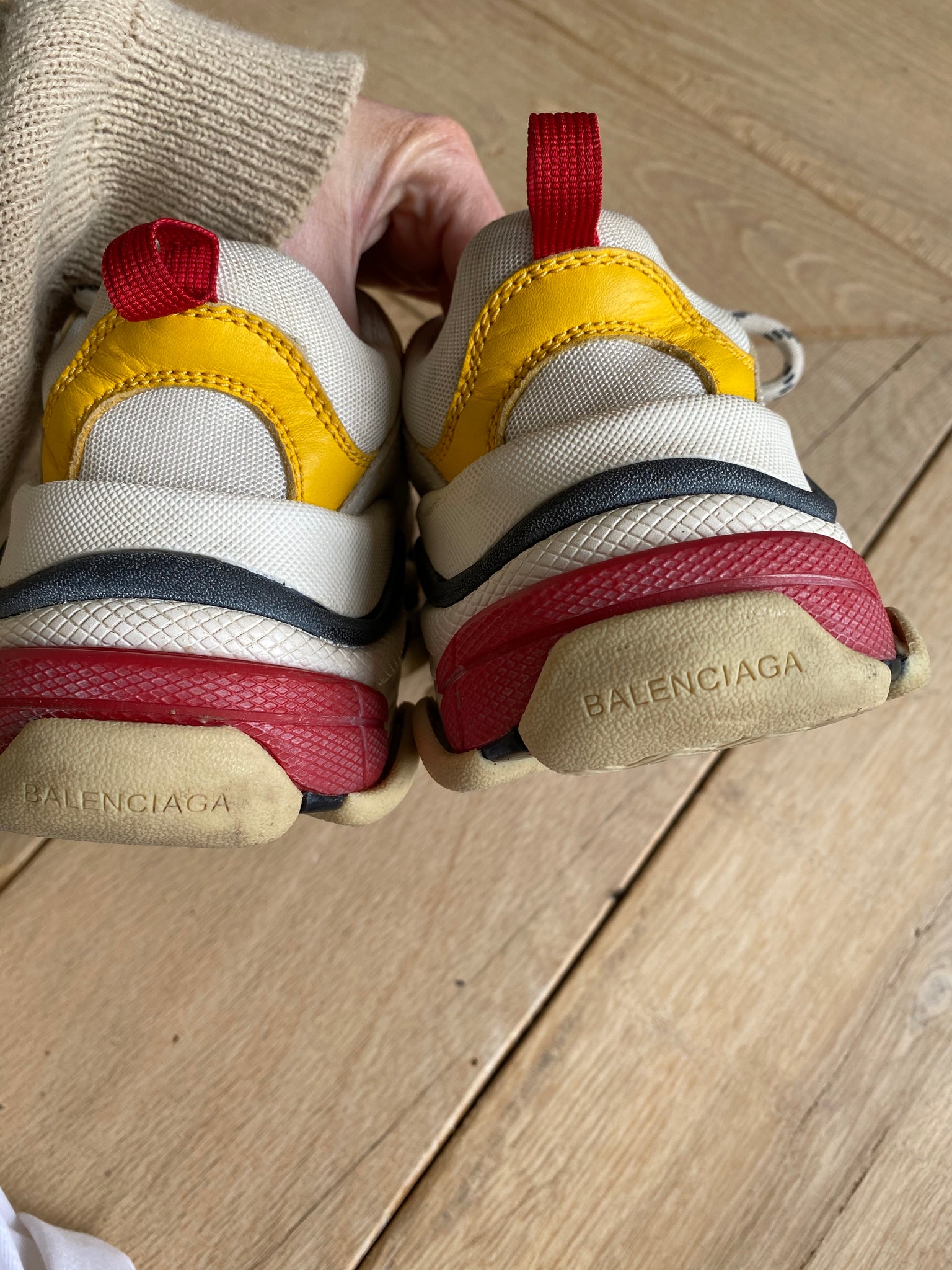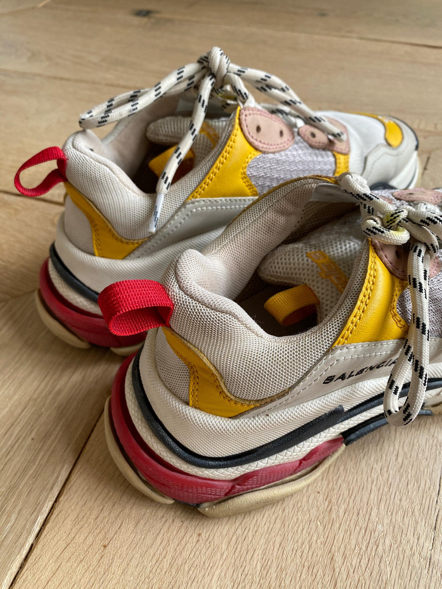 Trainers. White with yellow, navy and red. Triple S model. Unboxed.