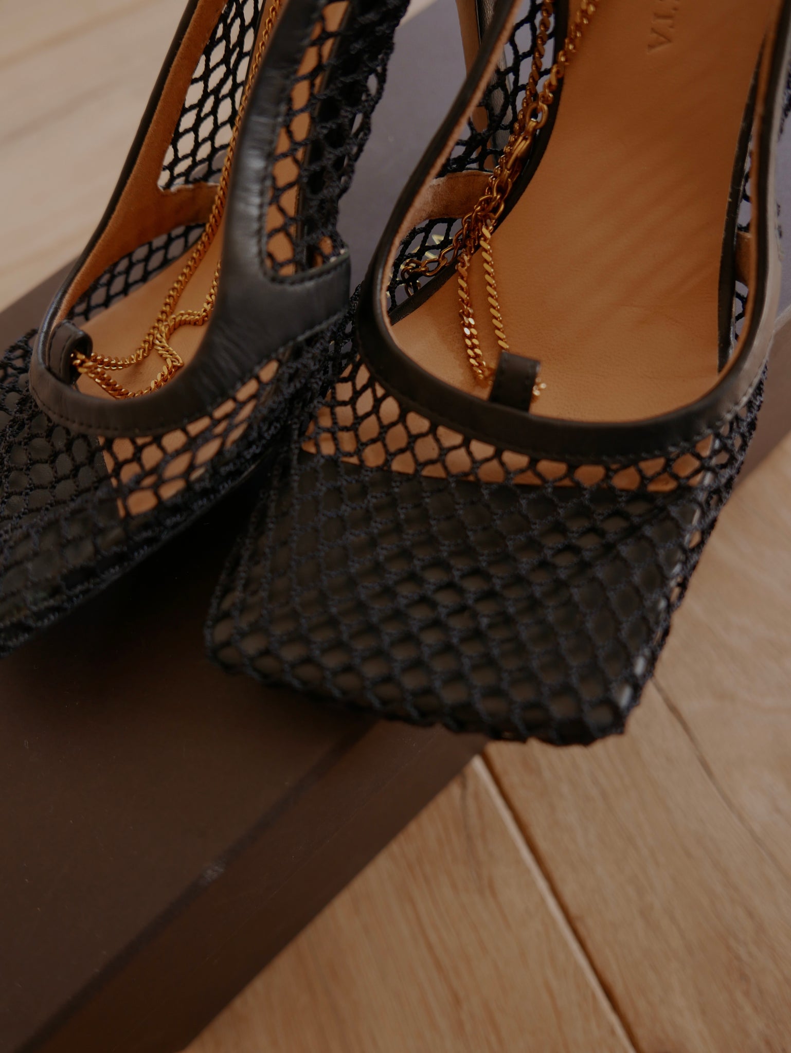 Bottega Veneta black stretch fishnet leather pumps RRP £750