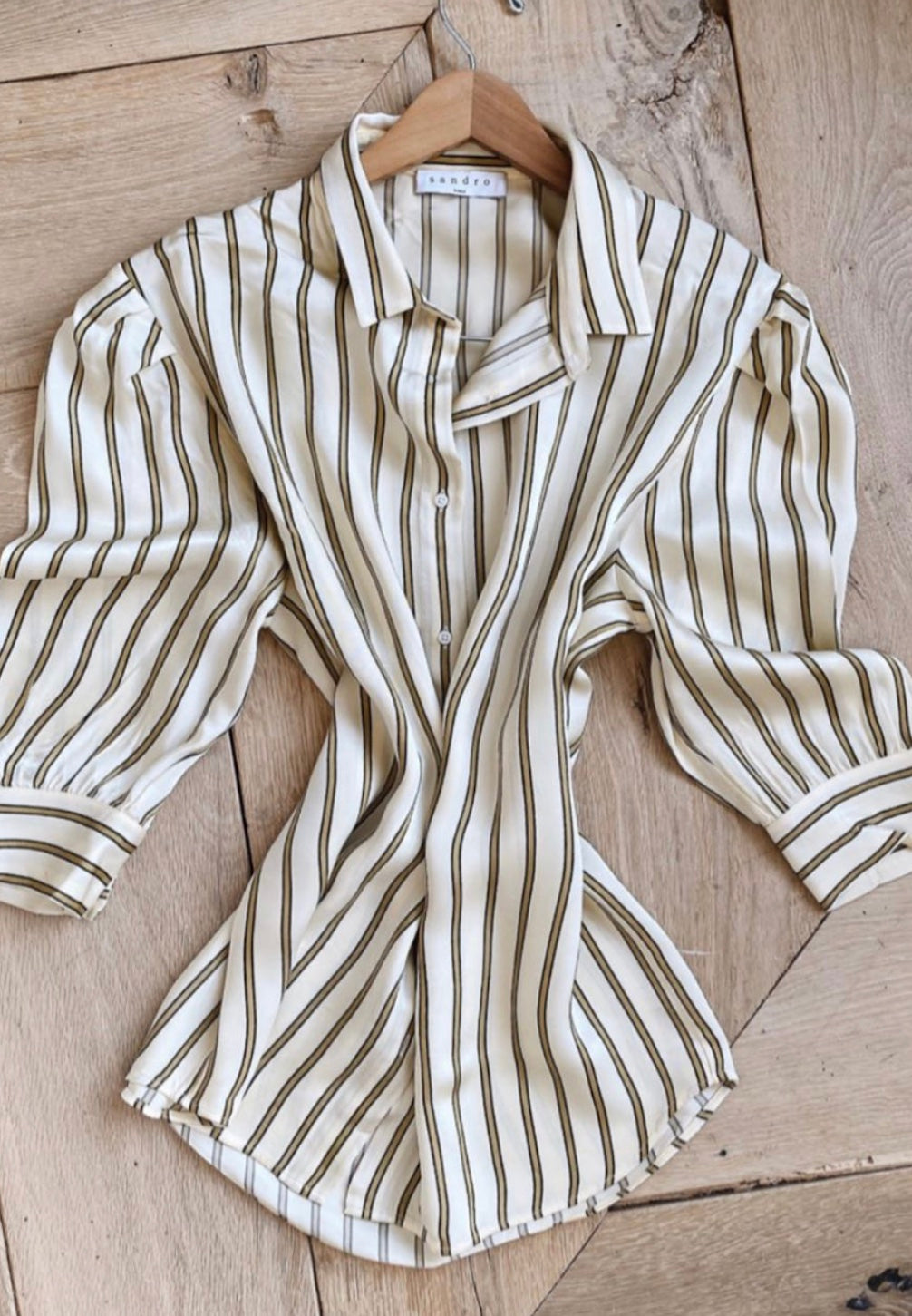 Stripe cream silk shirt with puff sleeve and boxy fit... perfect with jeans or as a summer cover-up